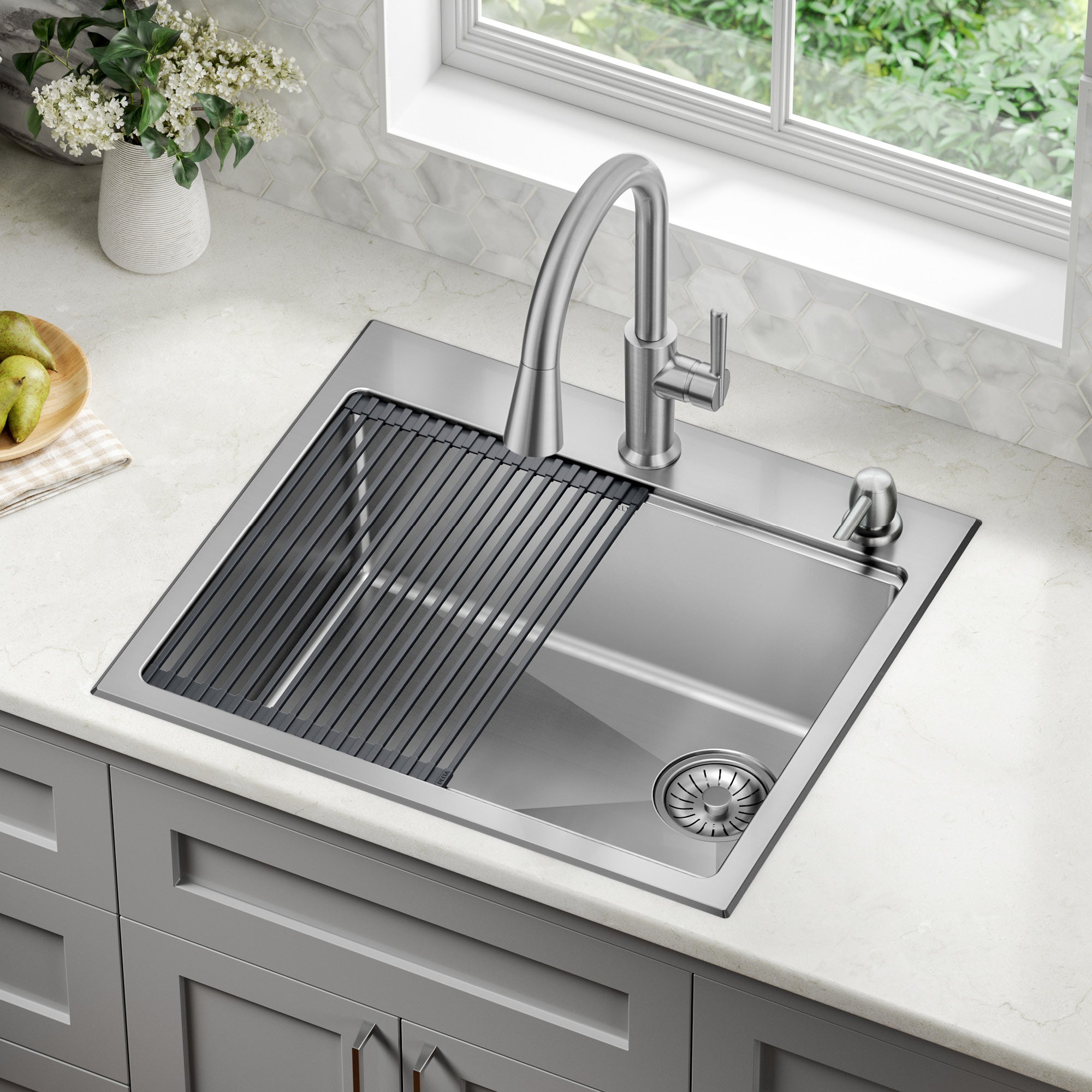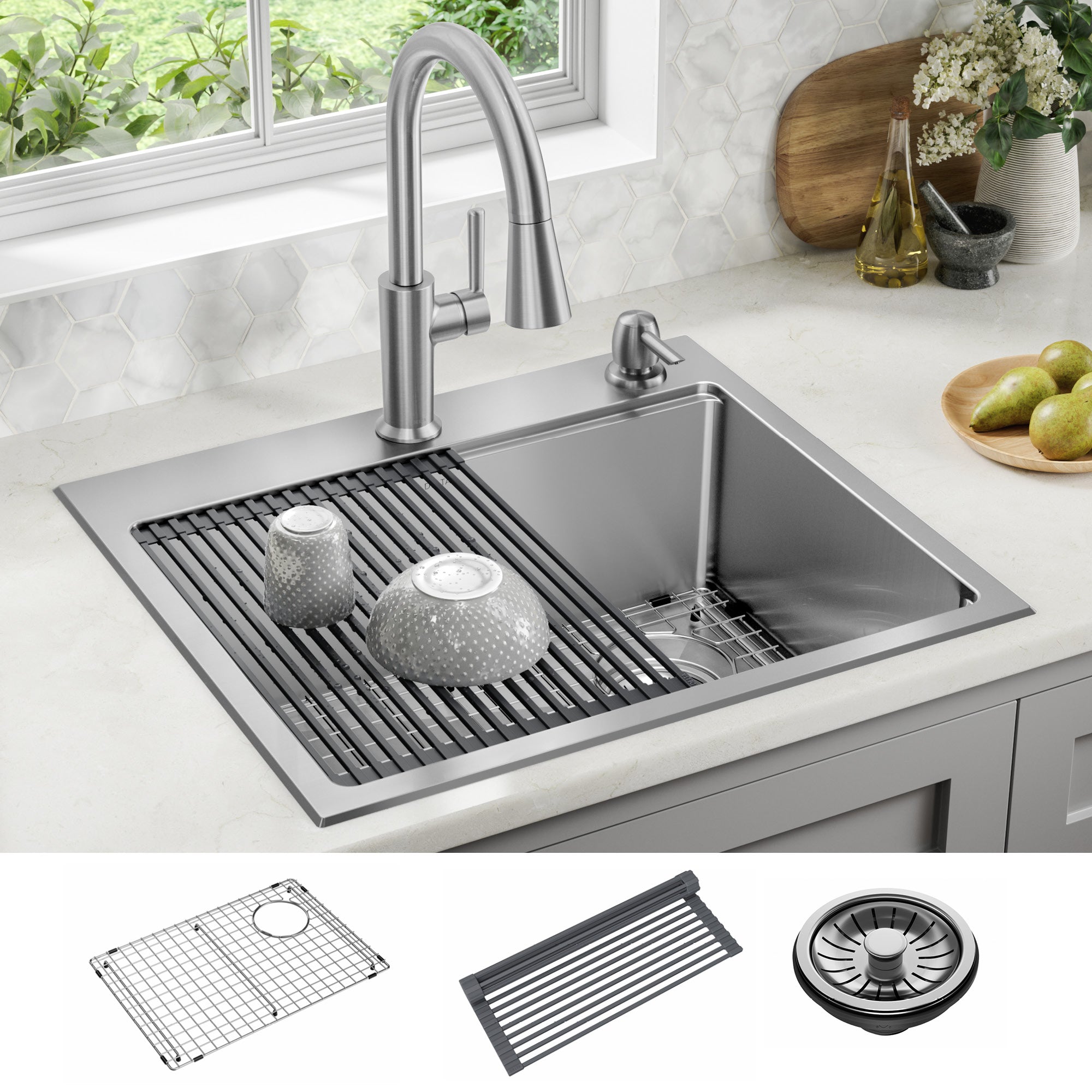- SPACIOUS & DEEP SINGLE BOWL fits plenty of dishes and large cookware while keeping mess and splatter inside the sink – Designed with rear-offset drain to offer more work surface inside the sink and more storage space in the cabinet