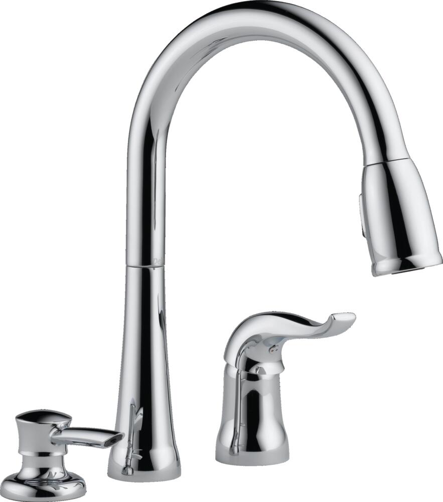The Pull-Down spray wand comes free with a gentle tug and gives you total flexibility. The hose extends and retracts without friction points fed by gravity. As you raise the wand to dock it the magnet embedded in the spout pulls the wand precisely into place. So unlike other Pull-Downs that tend to droop over time MagnaTite keeps your Pull-Down faucet looking picture-perfect. Delta's exclusive DIAMOND Seal Technology uses a valve with a tough diamond coating. InnoFlex PEX waterways keep water inside the faucet out of contact with potential metal contaminants. This powerful combination brings you a faucet built to last up to five million uses. Only Delta faucets are equipped with Touch-Clean soft rubber nubbins that allow you to easily wipe away calcium and lime build-up with the touch of a finger.