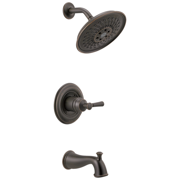 - Pull-up tub spout diverts water from the spout to the Showerhead