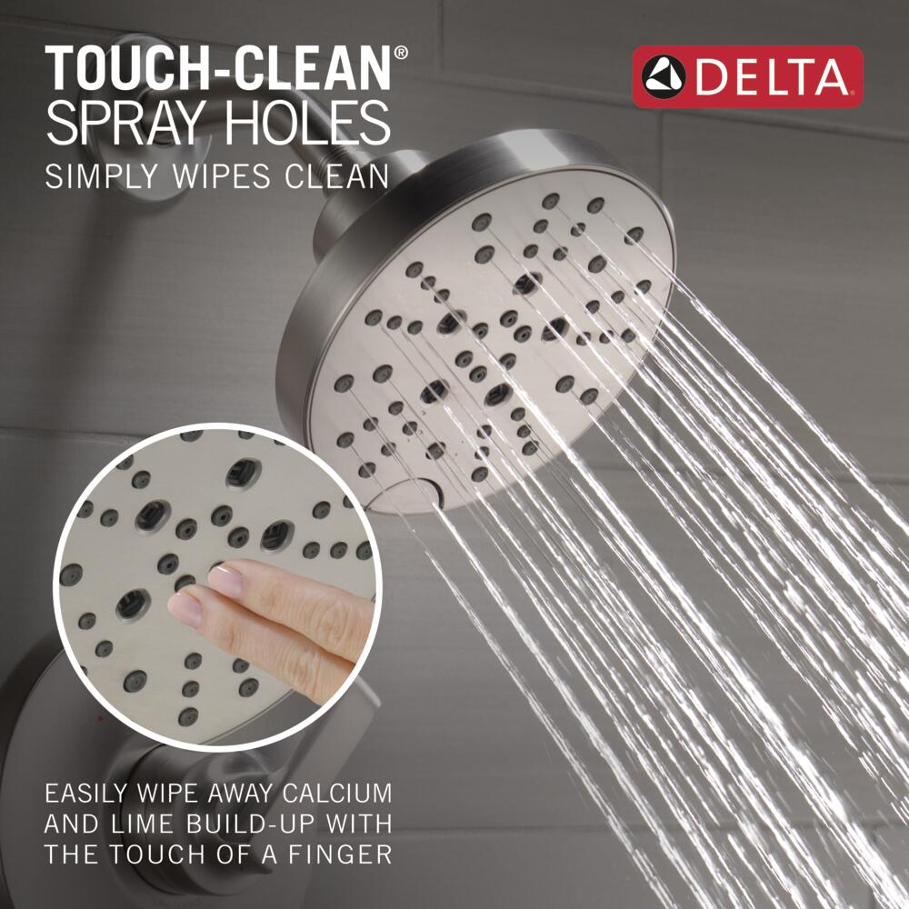 - Soft, rubber Touch-Clean® spray holes allow you to easily wipe away calcium and lime buildup from the spray face of your shower head and hand shower with the touch of a finger