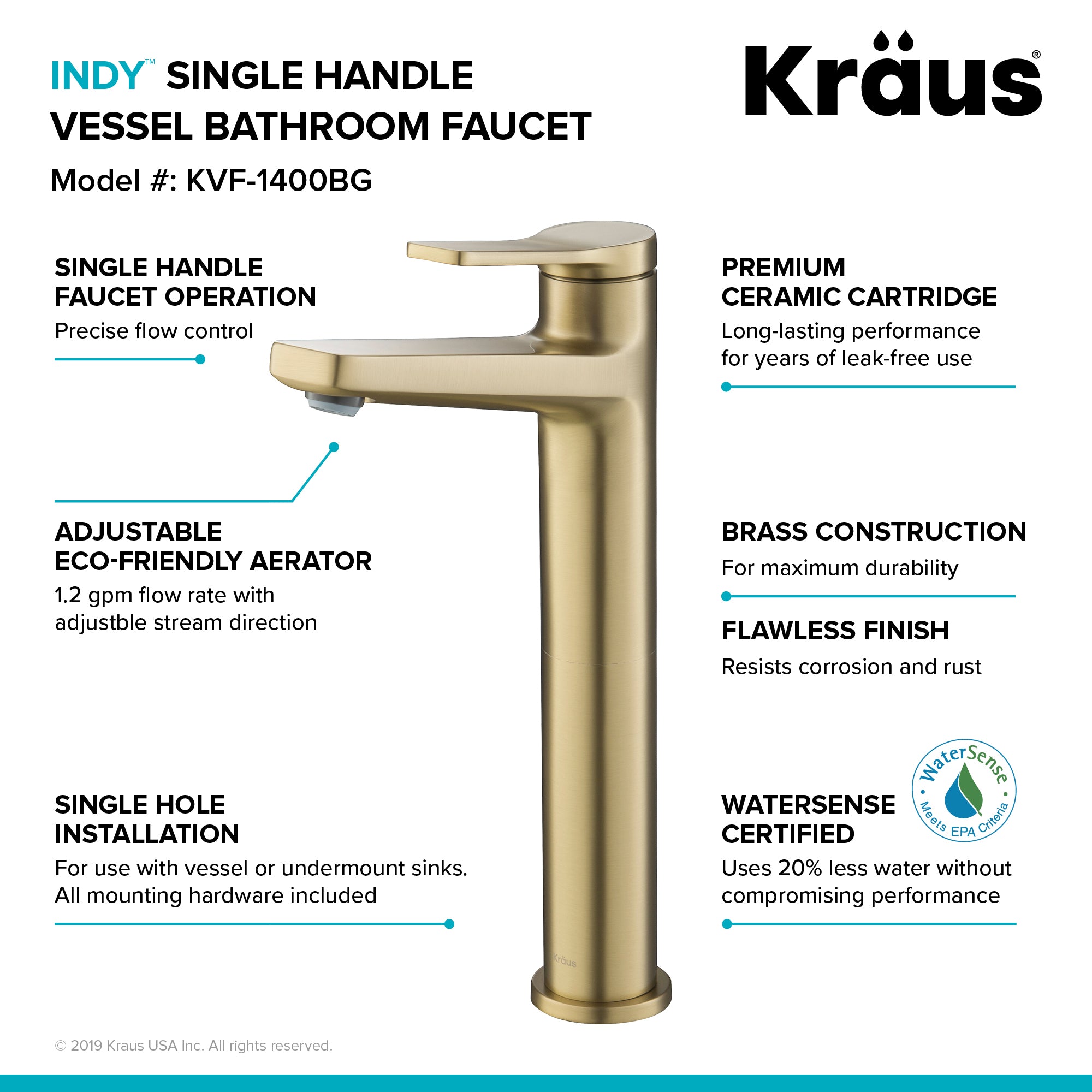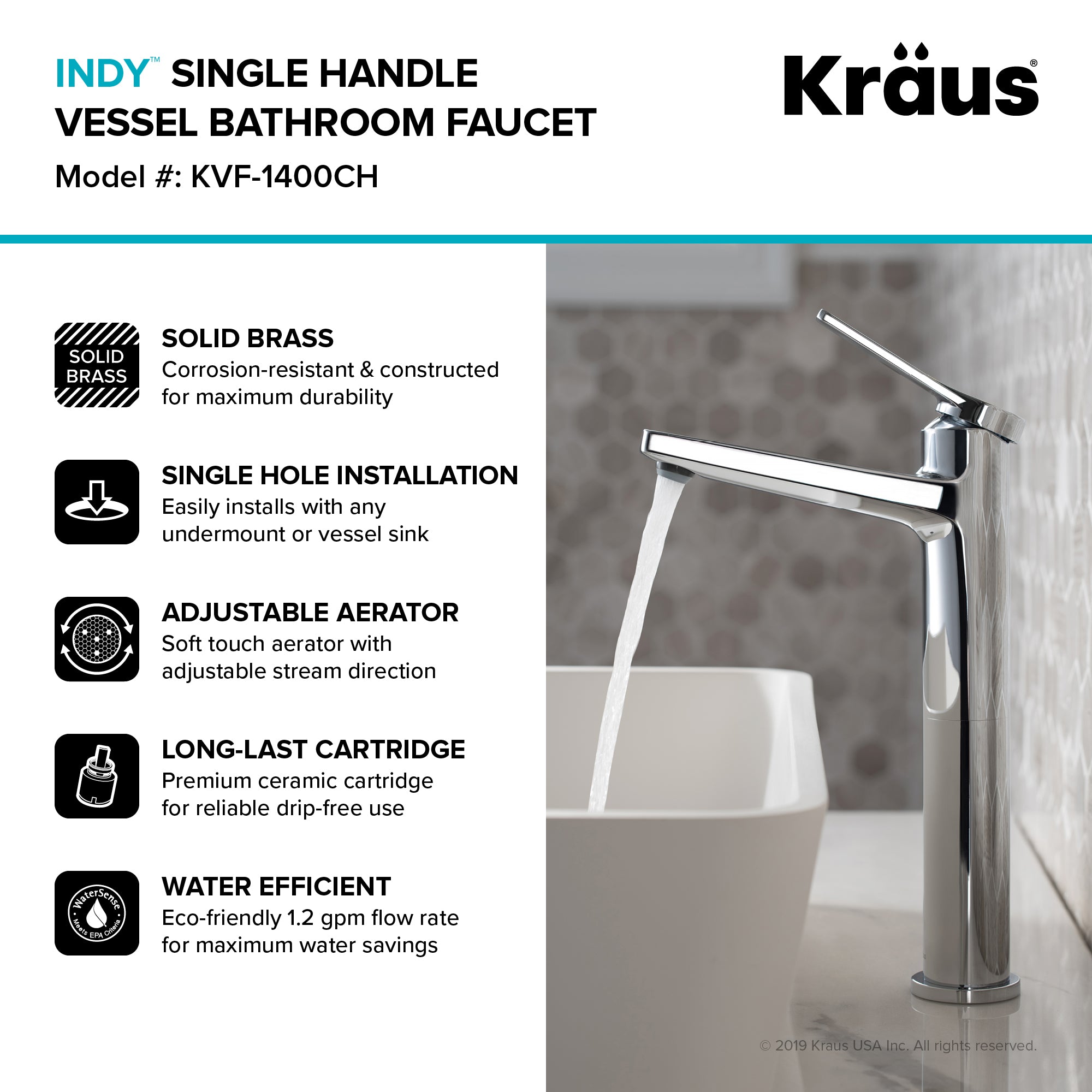 Kraus Indy Single Handle Vessel Bathroom Faucet