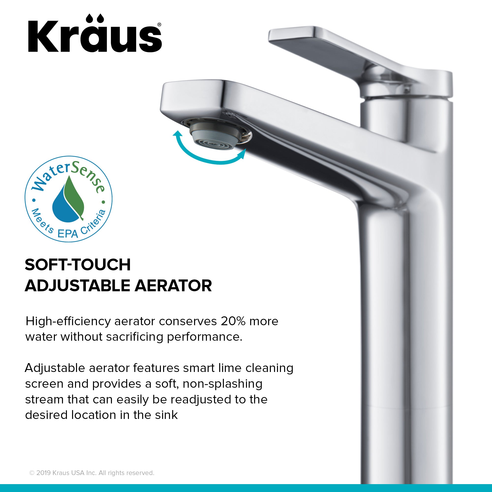 • ECO-FRIENDLY FAUCET uses 20% less water while maintaining a powerful flow
