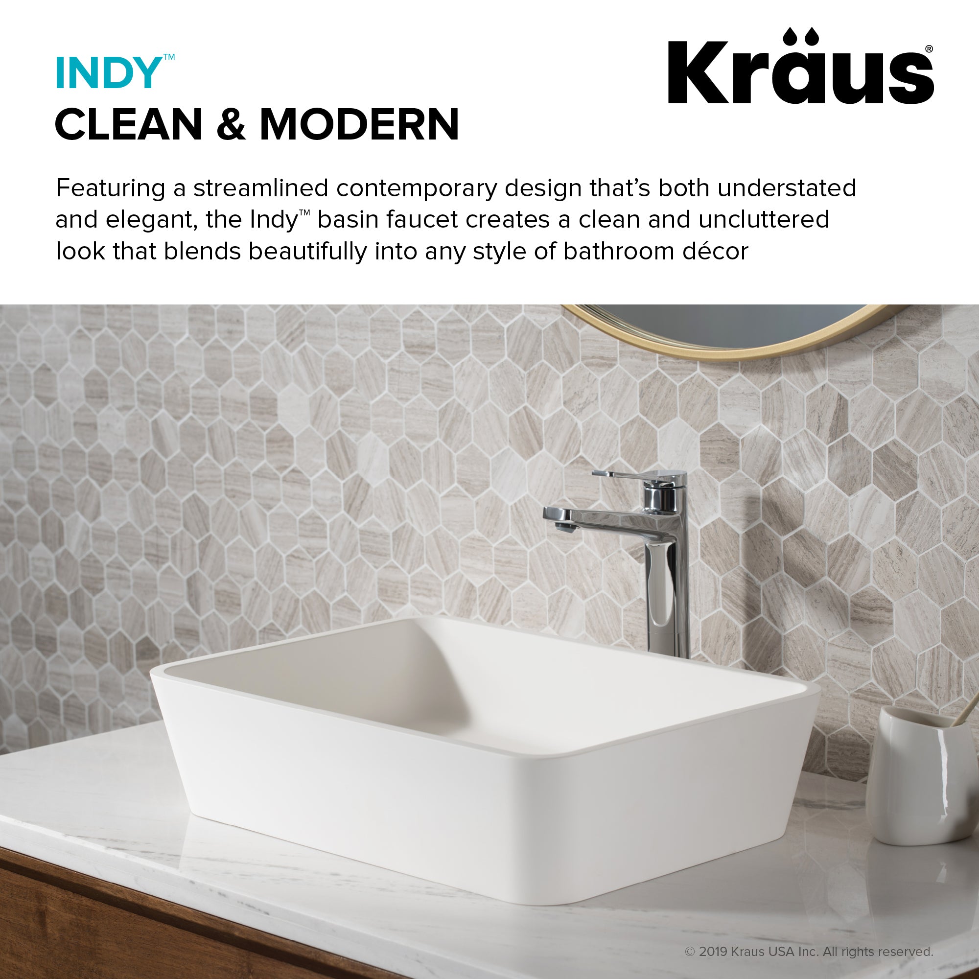 With a streamlined contemporary design that’s both understated and elegant, the Indy bathroom faucet creates a clean and uncluttered look that blends beautifully with any décor. The round faucet body gives way to a crisp linear spout, with a slim single-lever handle for effortless temperature and flow control. Premium components, including a best-in-industry aerator and leak-free ceramic cartridge, ensure a lifetime of functionality. Available in basin and tall vessel models for maximum design flexibility, this single hole faucet fits neatly with your choice of bathroom sink, and comes with pre-attached water lines for easy installation. Customize the look with your choice of finish, and create a bathroom you love.