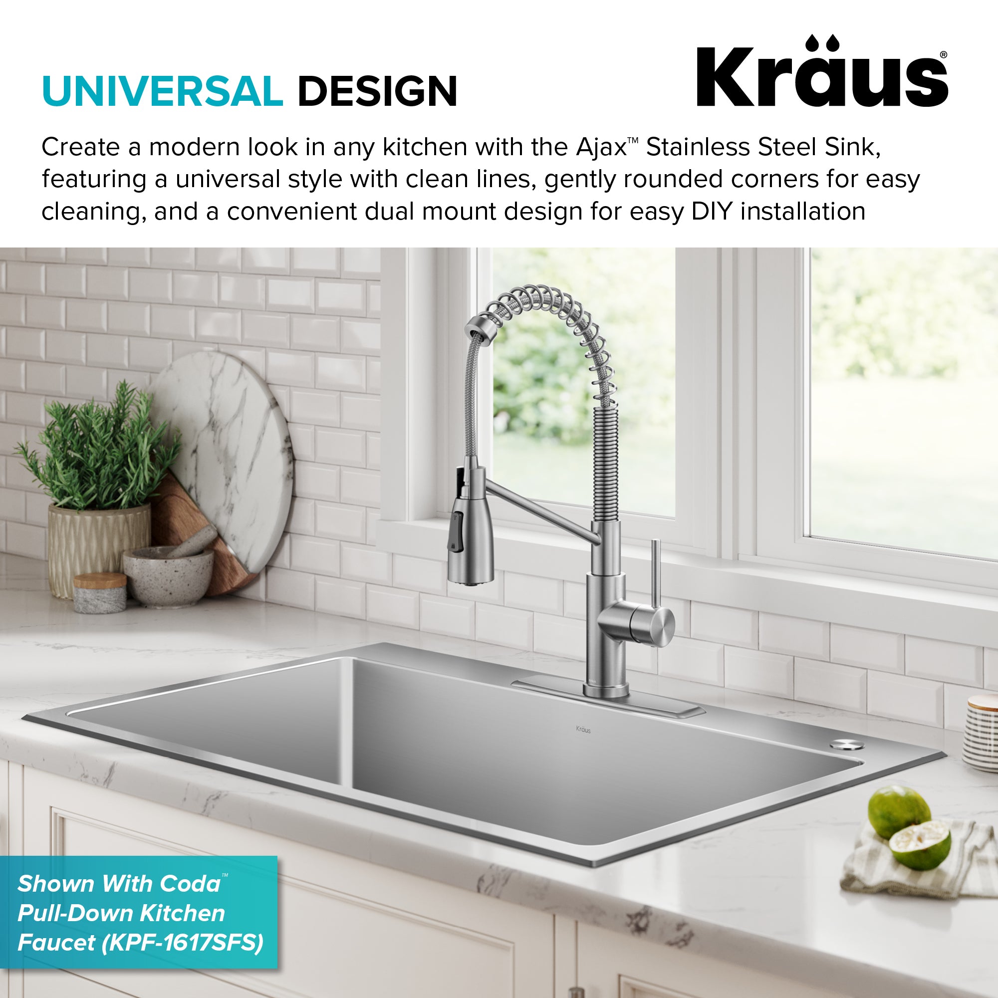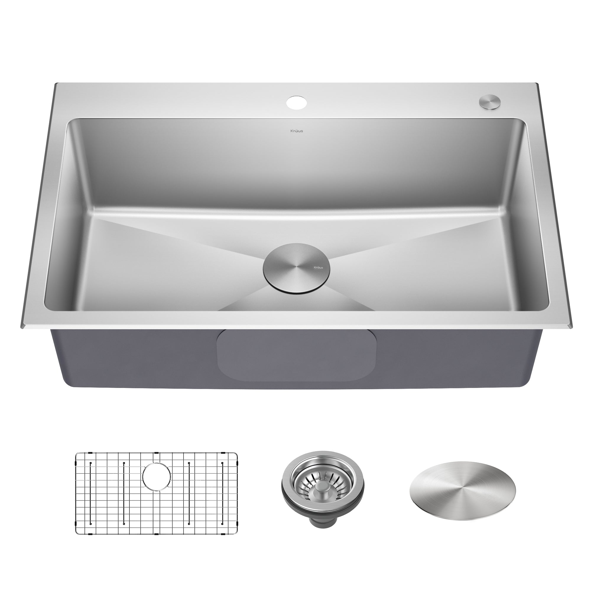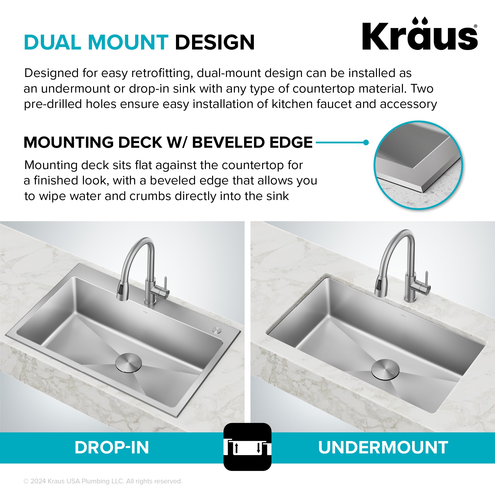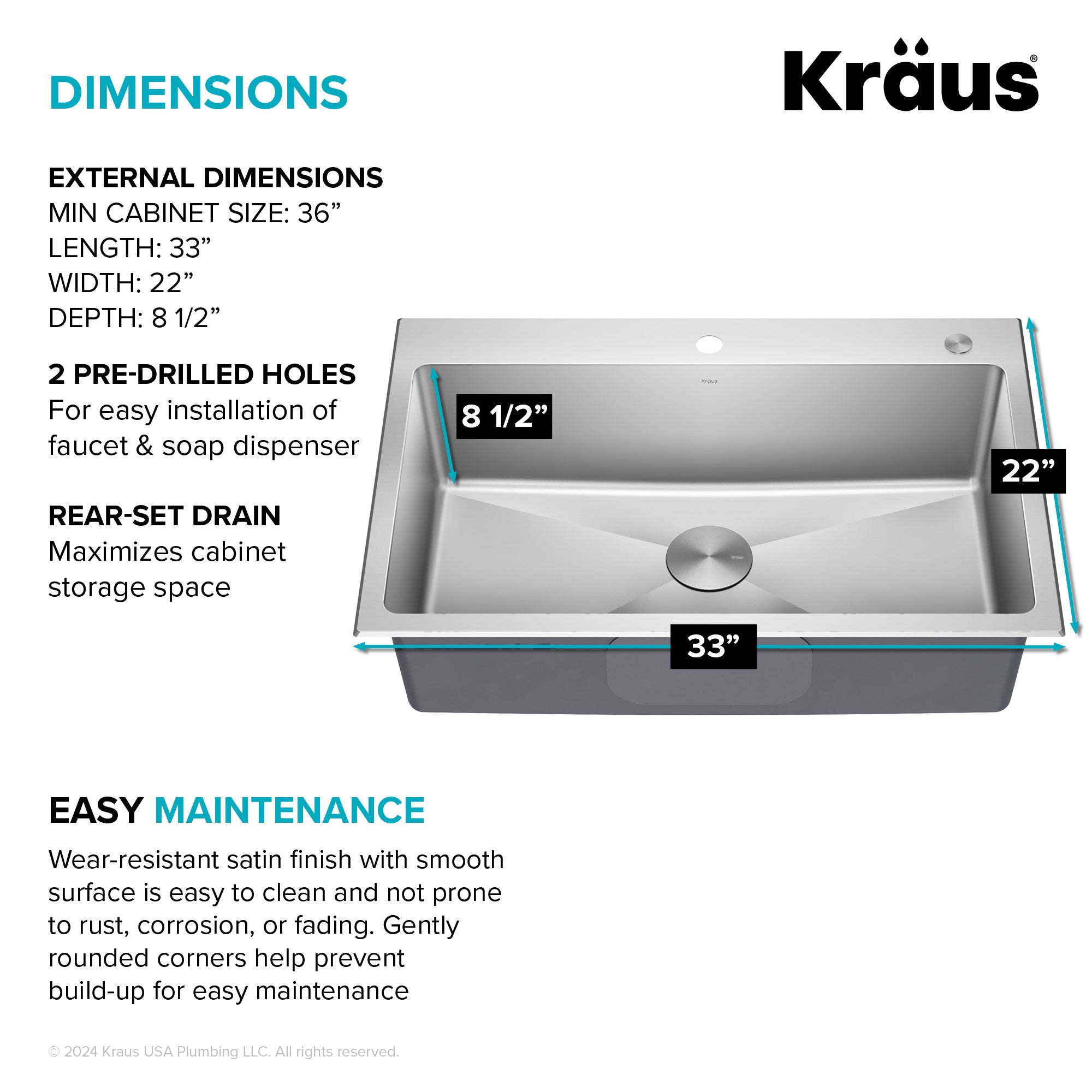 KRAUS Ajax 33” Drop-In / Undermount 18-Gauge Single Bowl Kitchen Sink