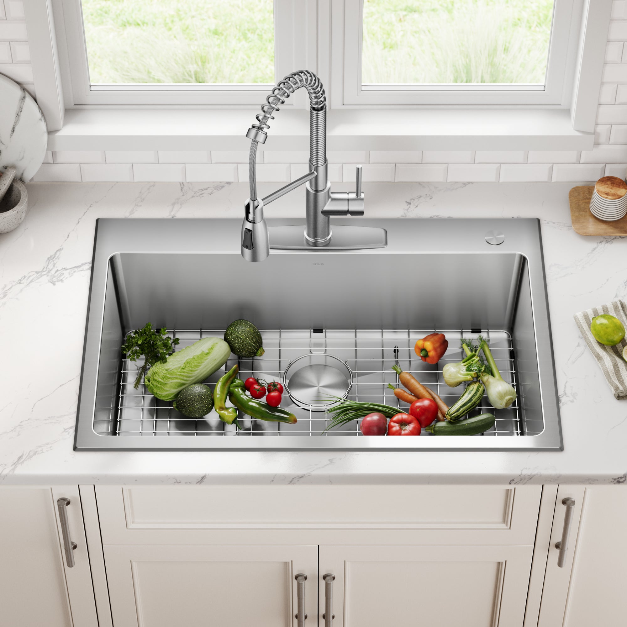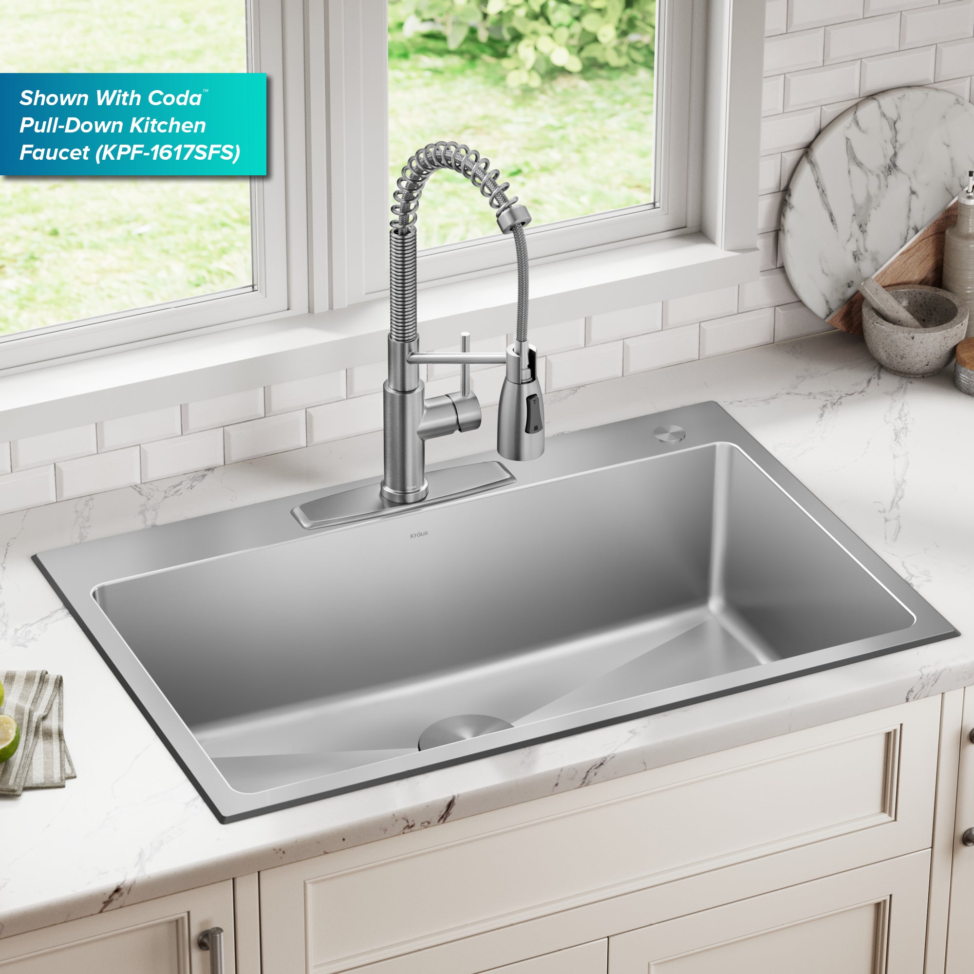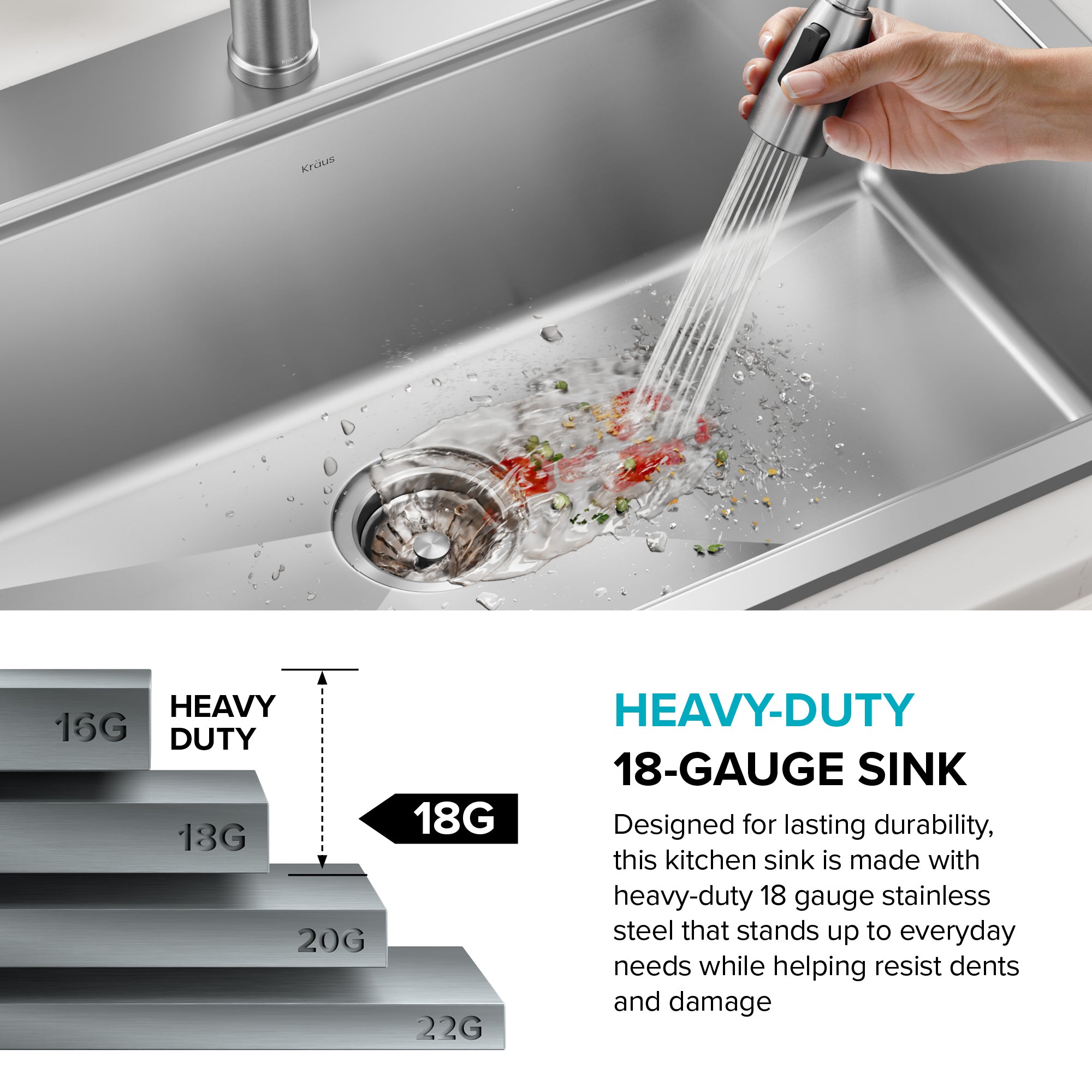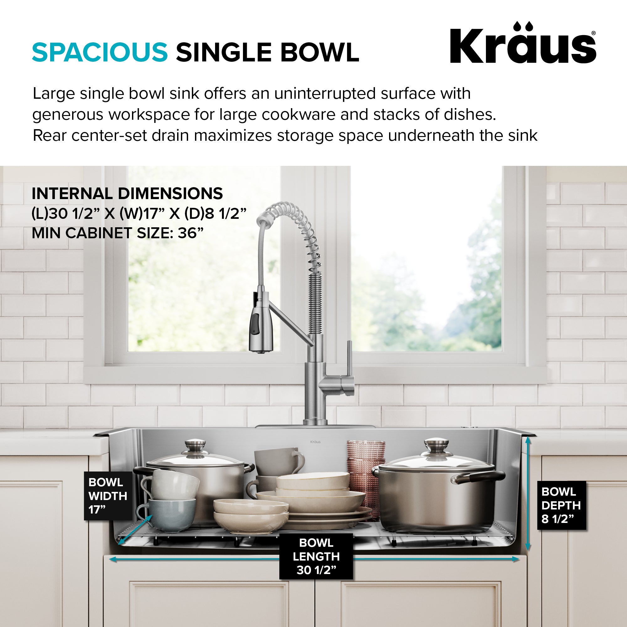KRAUS Ajax 33” Drop-In / Undermount 18-Gauge Single Bowl Kitchen Sink