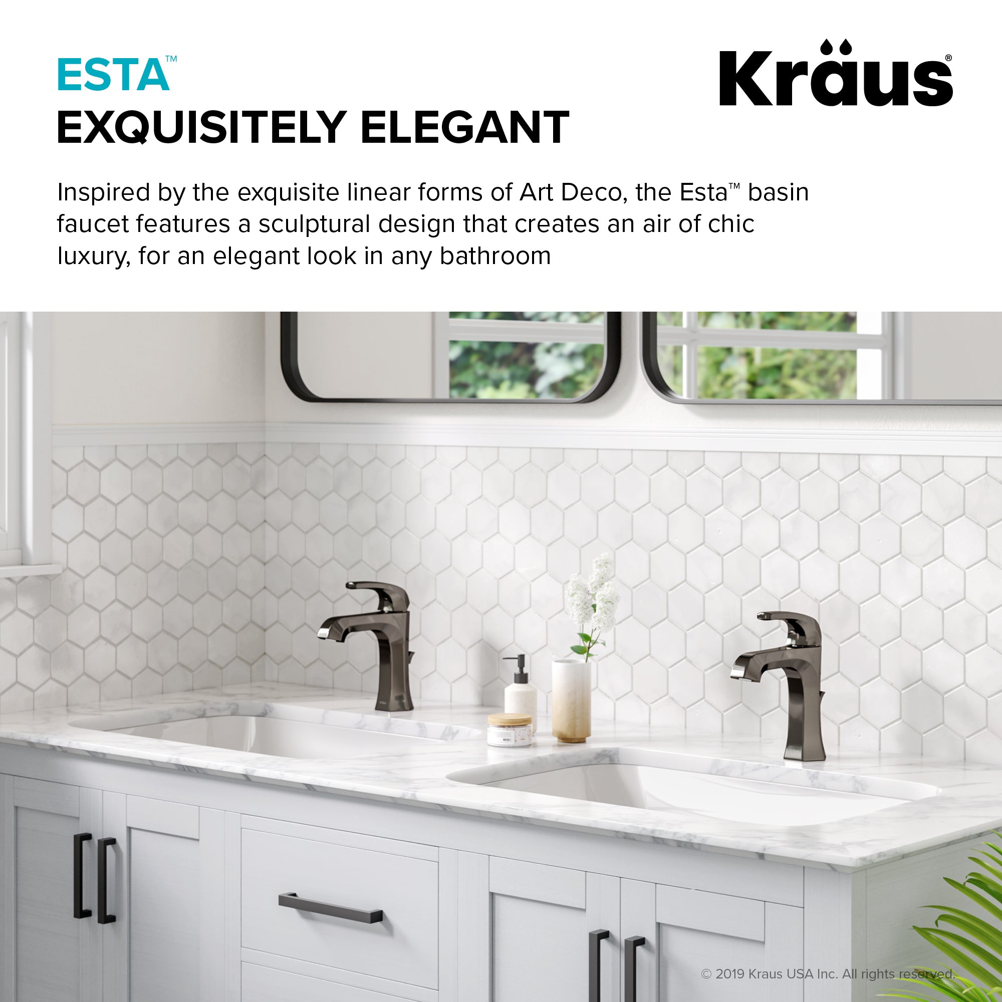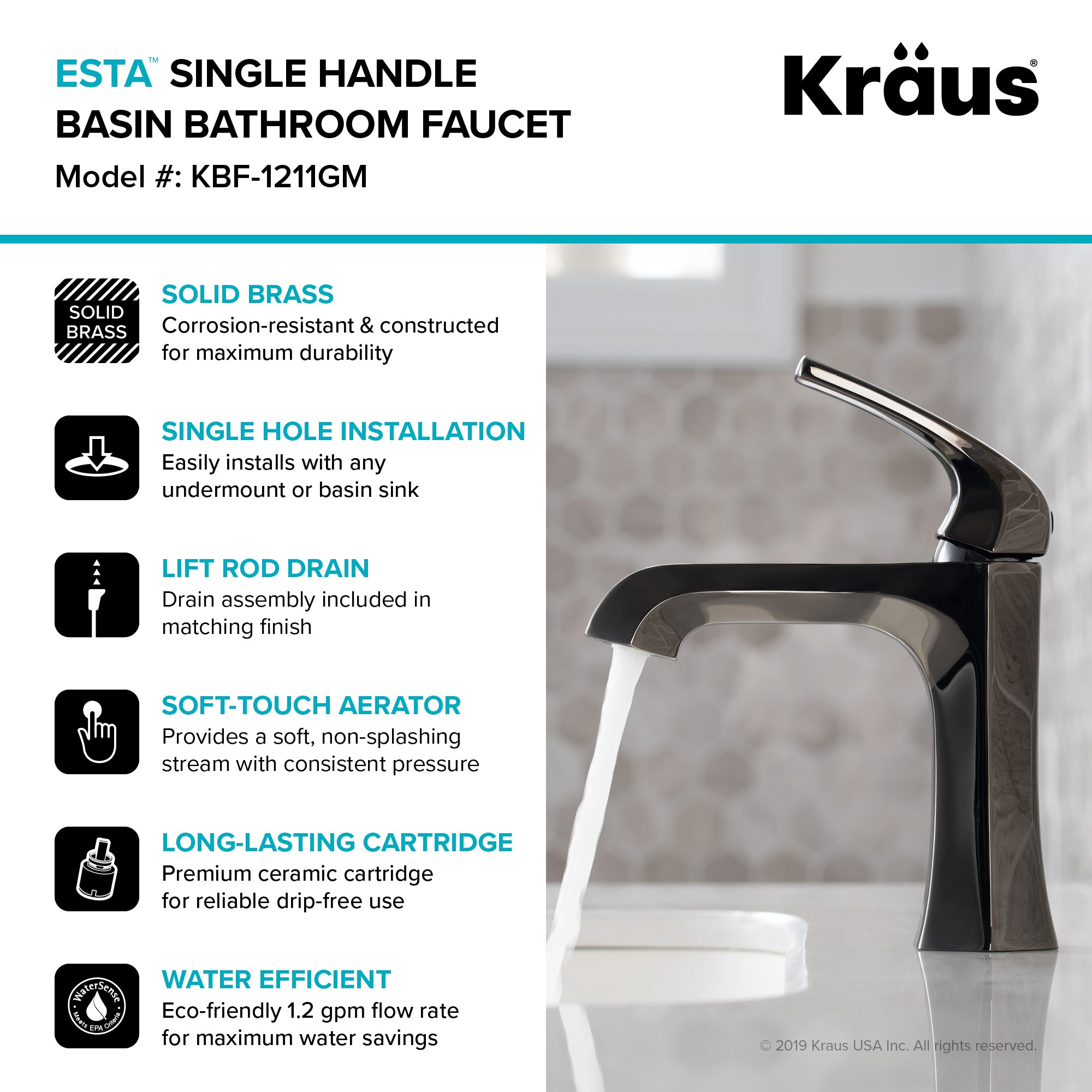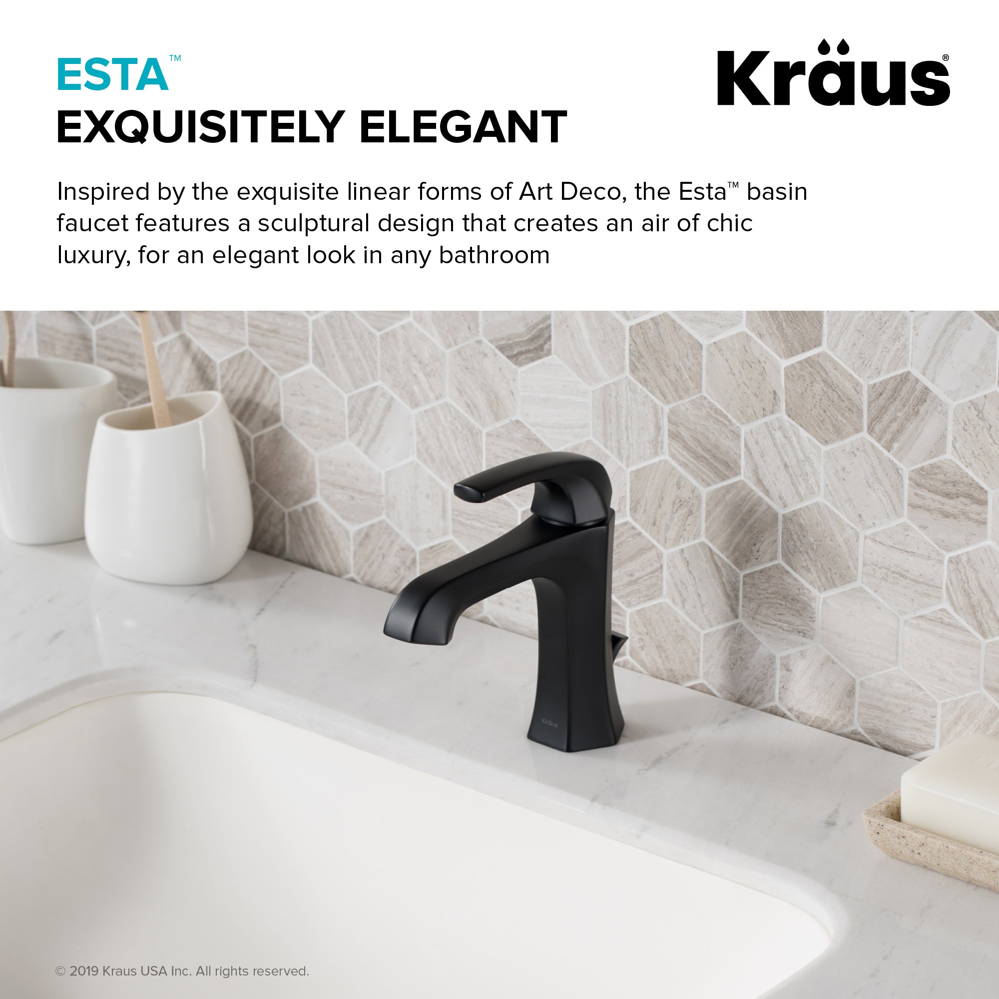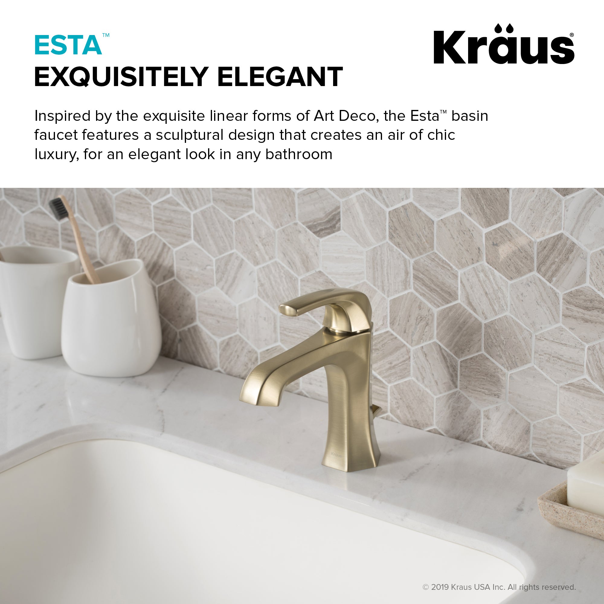 Inspired by the elegant linear forms of Art Deco architecture, Esta creates an air of chic luxury with its simple sculptural design. A geometric single lever handle complements the hexagonal body, and offers smooth operation with effortless temperature and flow control. Premium components, including a best-in-industry aerator and leak-free ceramic cartridge, ensure a lifetime of functionality. Available in basin and tall vessel models for maximum design flexibility, this single hole faucet fits neatly with your choice of bathroom sink, and comes with pre-attached water lines for easy installation. Customize the look with your choice of finish: Spot Free all-Brite Stainless Steel to prevent water spots and fingerprints, Matte Black, Brushed Gold, or striking Gunmetal for a modern edge.
