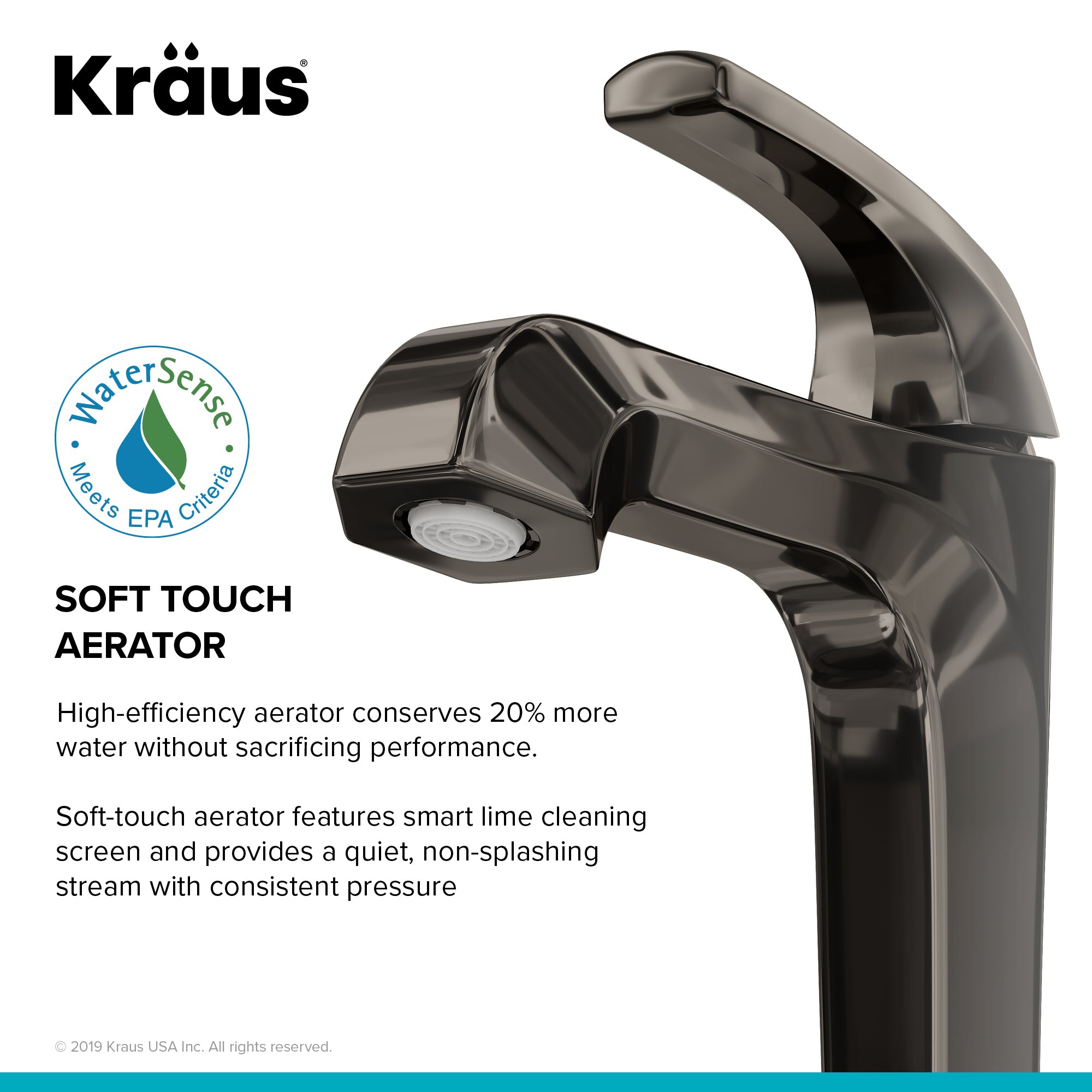 - WATER-SAVING AERATOR prevents limescale build-up and provides a soft and splash-free stream