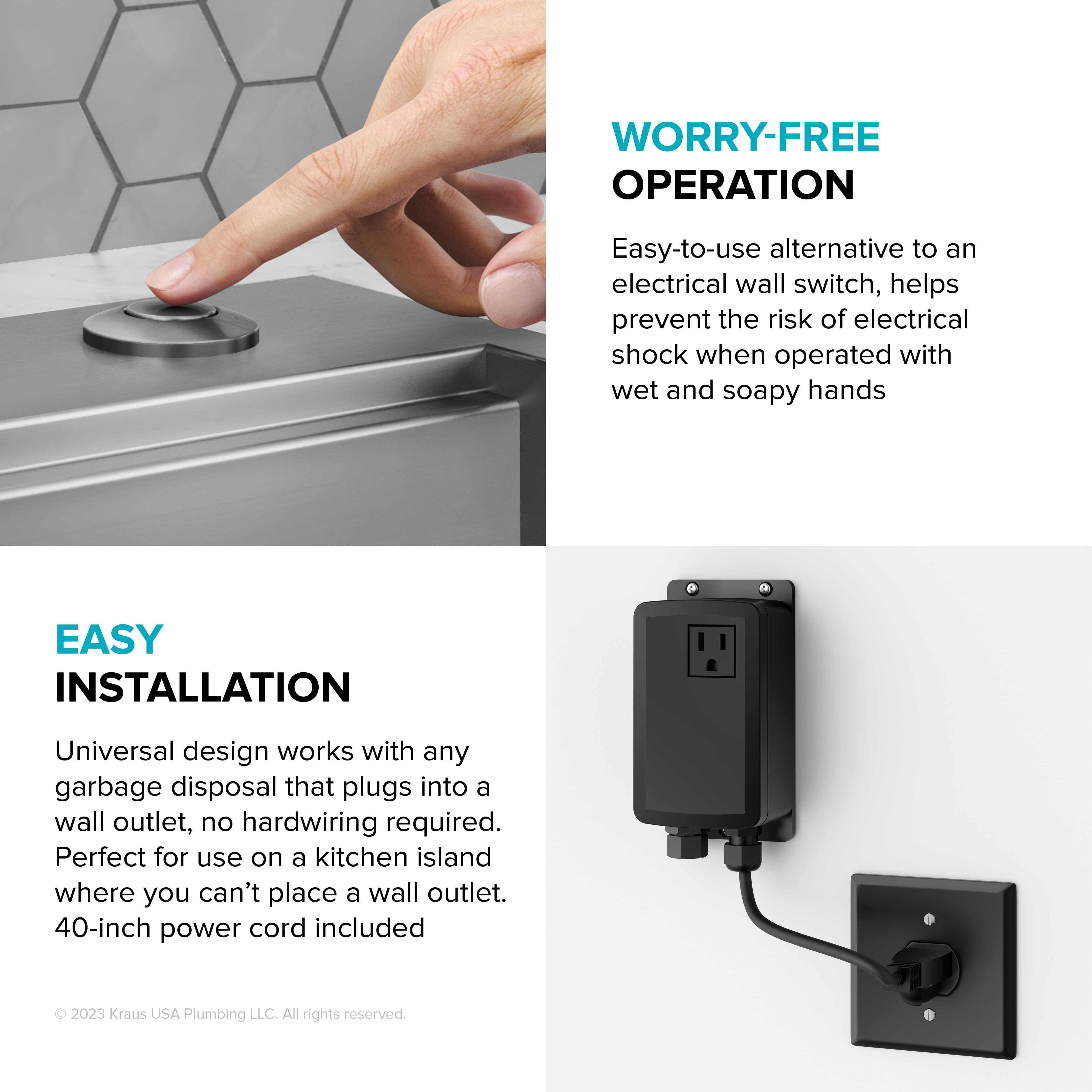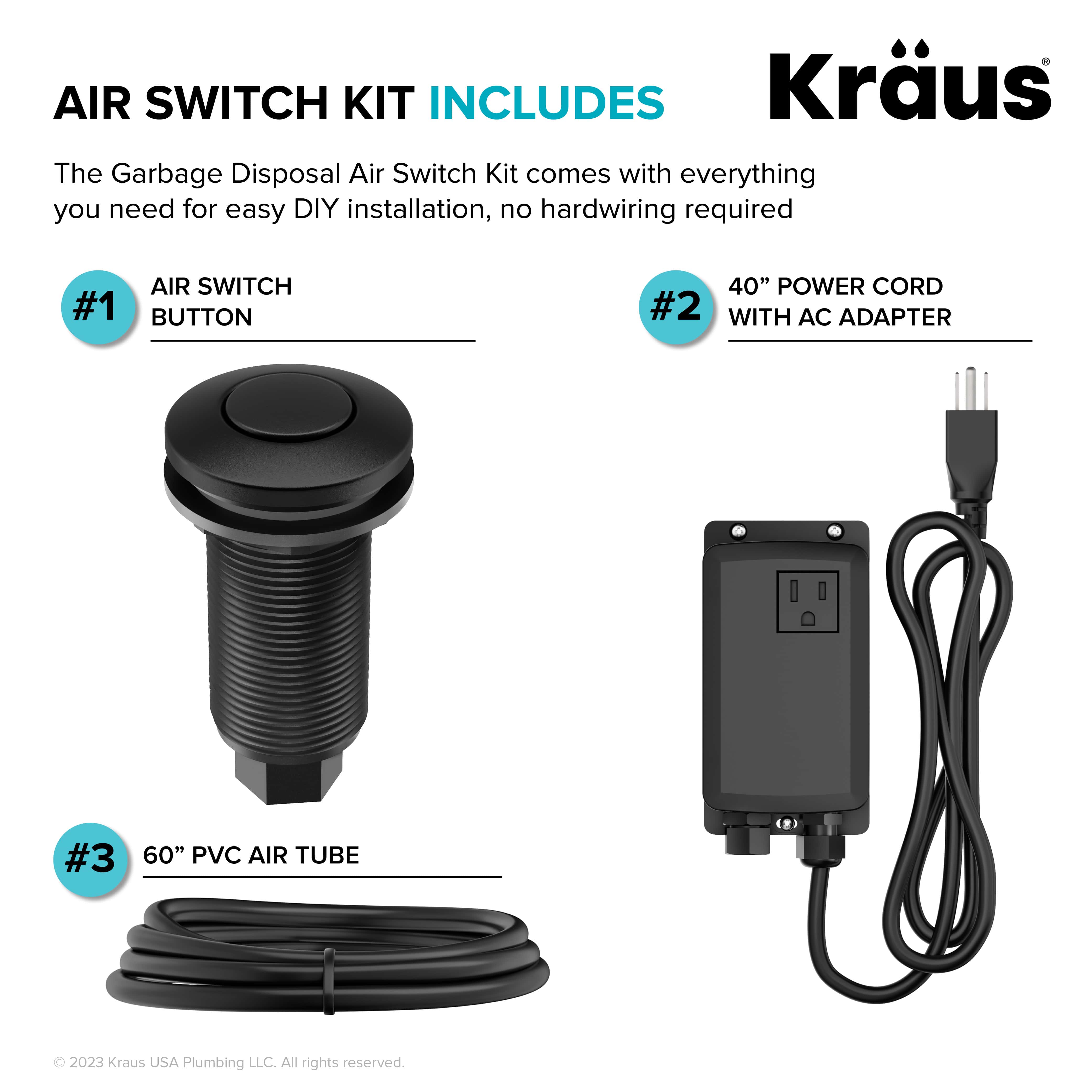 KRAUS Garbage Disposal Air Switch Kit with Push Button, AC Adapter, Power Cord, and Air Tube Included