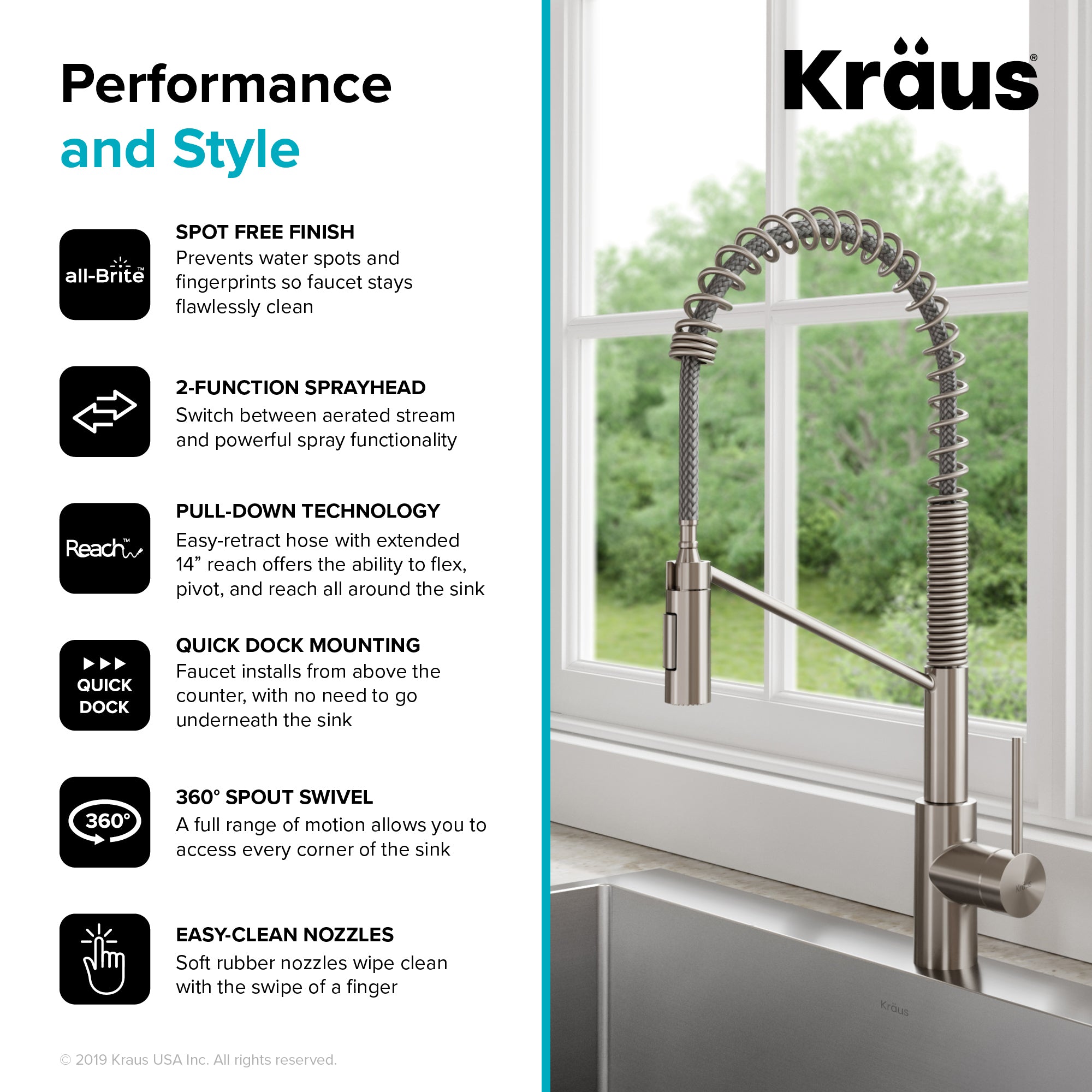 - HIGH-ARC SPOUT offers ample height clearance for filling tall pitchers swivels 360° for a broad range of motion