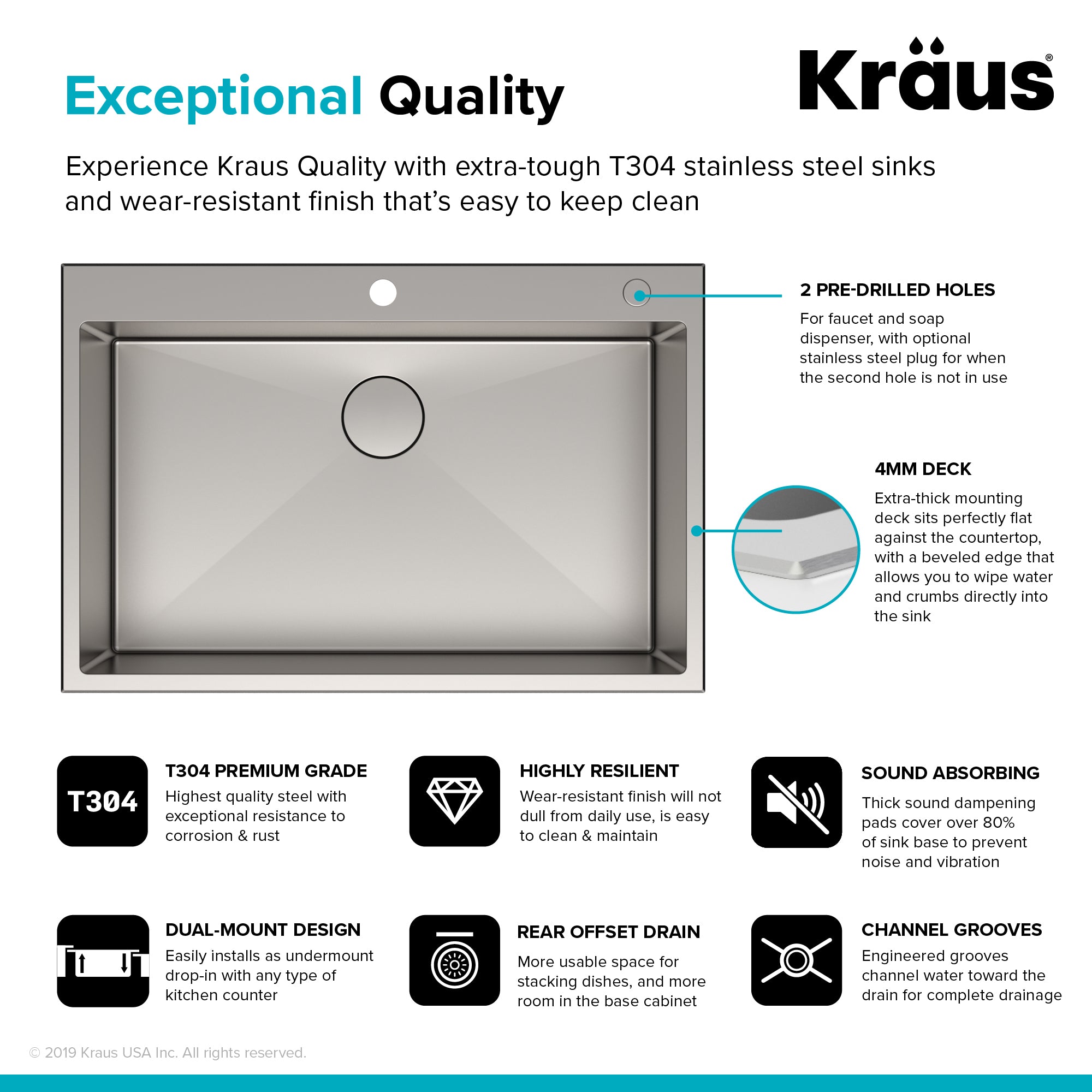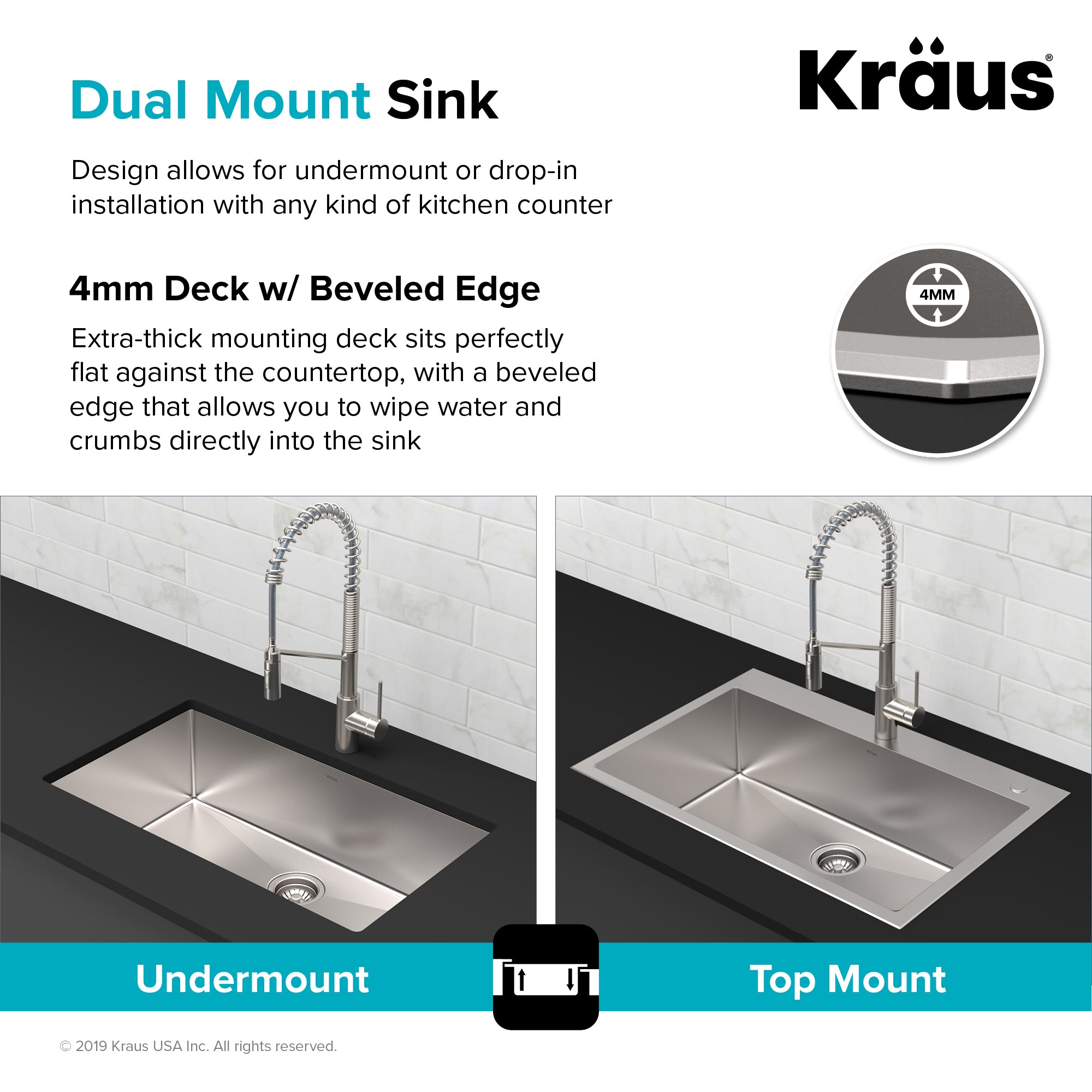 - DUAL MOUNT SINK DESIGN with extra-thick 4mm mounting deck allows for undermount or drop-in installation with any type of kitchen counter